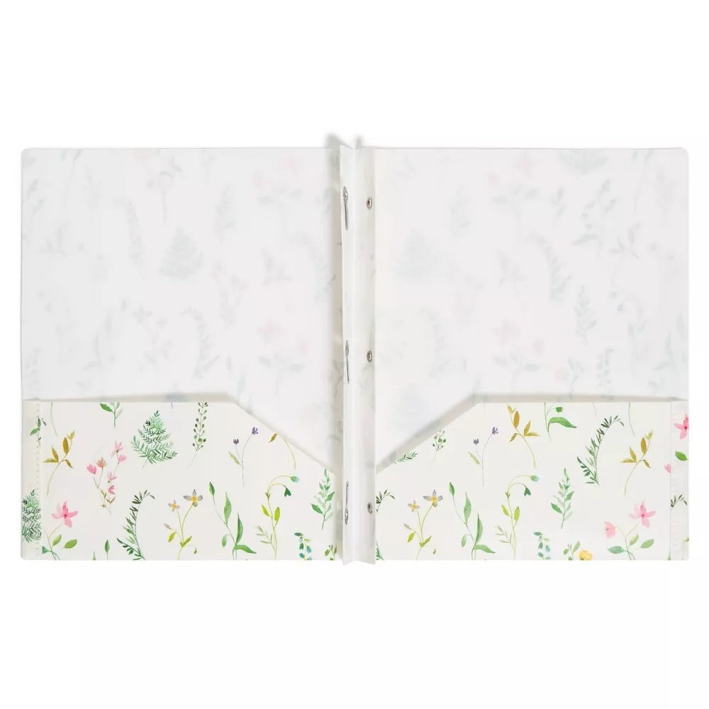 U Brands 2 Pocket Fashion Plastic Folder Pressed Botanicals Cream, School Supplies